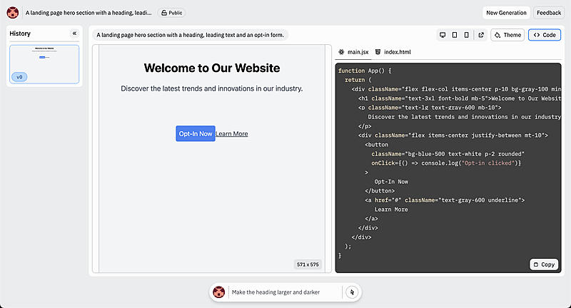 Generative UI. An (old) clone of Vercel's v0.Table of Contents