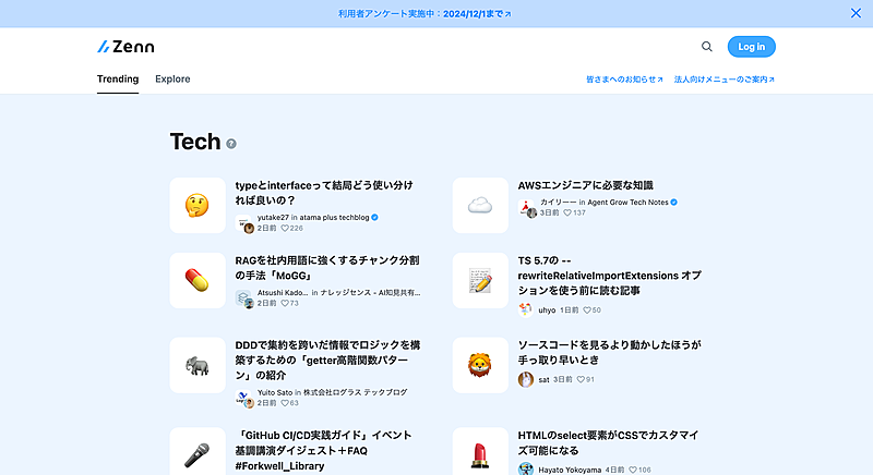 Zero Blog's design is informed by zenn.dev